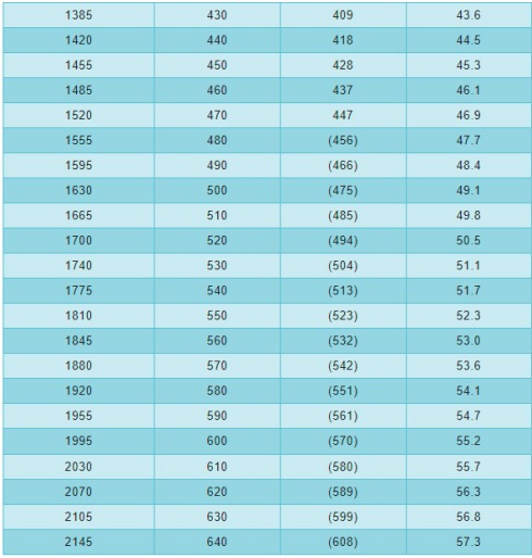 洛氏硬度試驗(yàn)采用三種試驗(yàn)力,三種壓頭,它們共有9種組合,對(duì)應(yīng)于洛氏硬度的9個(gè)標(biāo)尺。這9個(gè)標(biāo)尺的應(yīng)用涵蓋了幾乎所有常用的金屬材料。常用的有HRA、HRB和HRC三種。