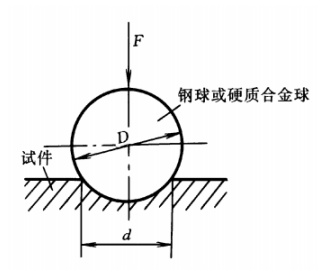 用直徑D的硬質(zhì)合金球作壓頭,以相應(yīng)的試驗(yàn)力F壓入試件表面,經(jīng)規(guī)定的保持時(shí)間后,卸除試驗(yàn)力,得到一直徑為d的壓痕。用試驗(yàn)力除以壓痕表面積,所得值即為布氏硬度值,符號(hào)用HBW表示。